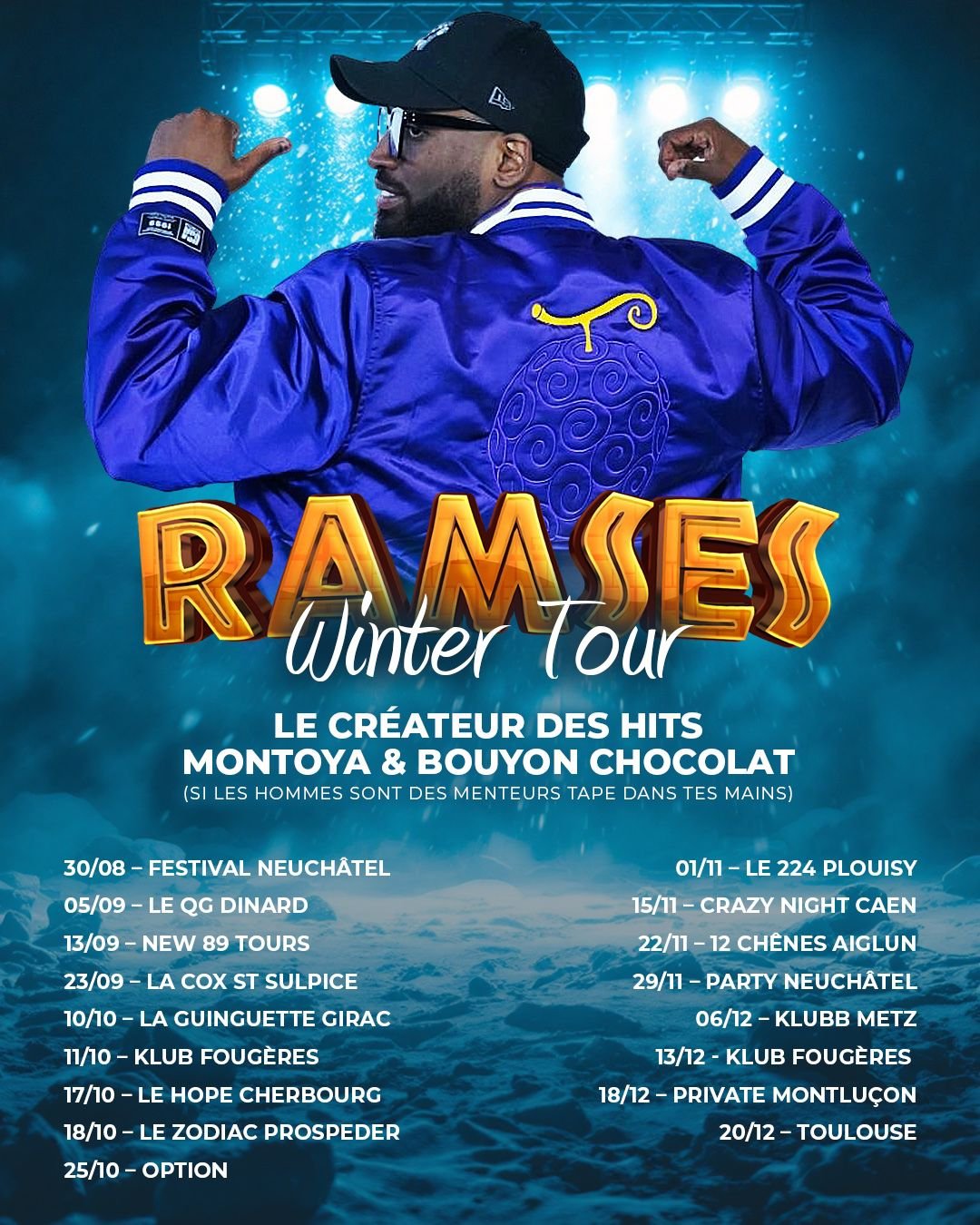Des clubs français aux scènes internationales, Ramses a marqué des lieux emblématiques comme Le 555 (Tanger), Hive Club (Malte) et FluoNeuchâtel (Suisse) . Ses sets afro-urbains, portés par un style hybride mêlant mix, chant et interaction, s’adaptent toujours à l’énergie du public pour transformer chaque date en expérience unique.